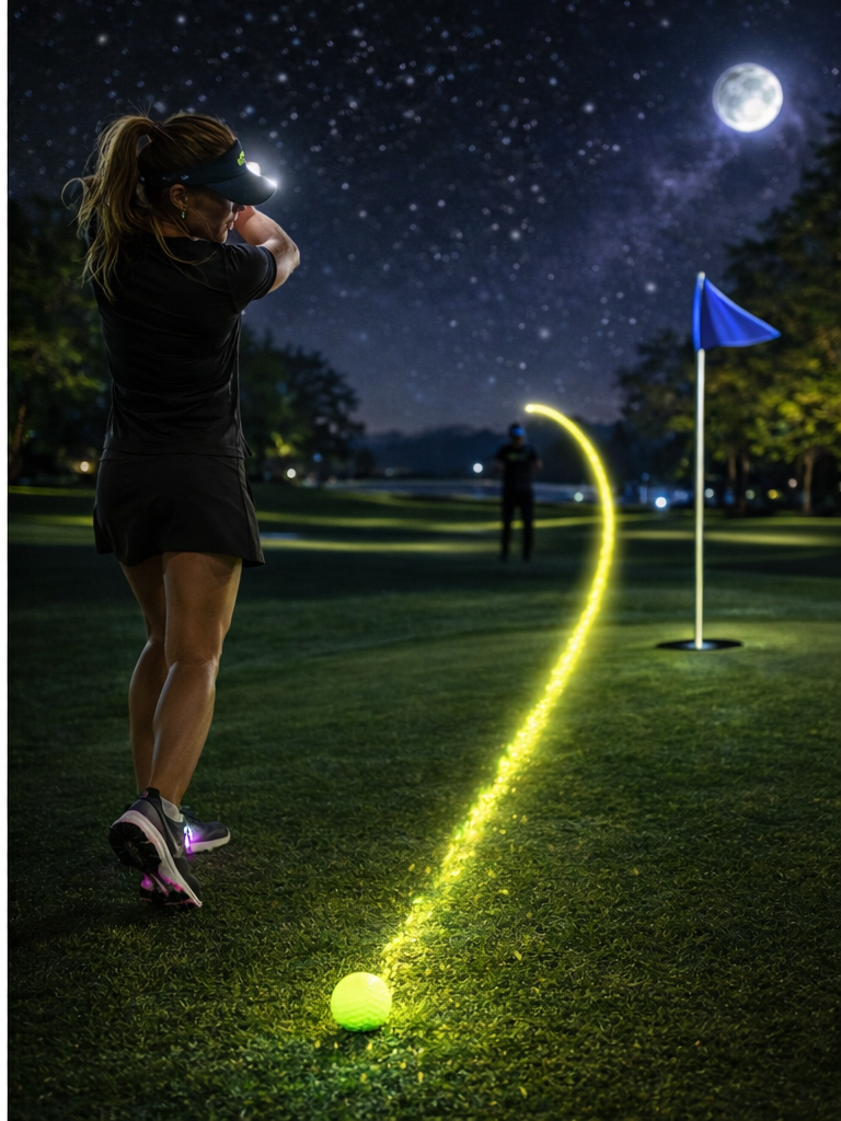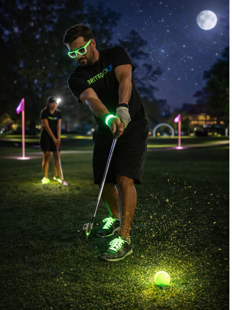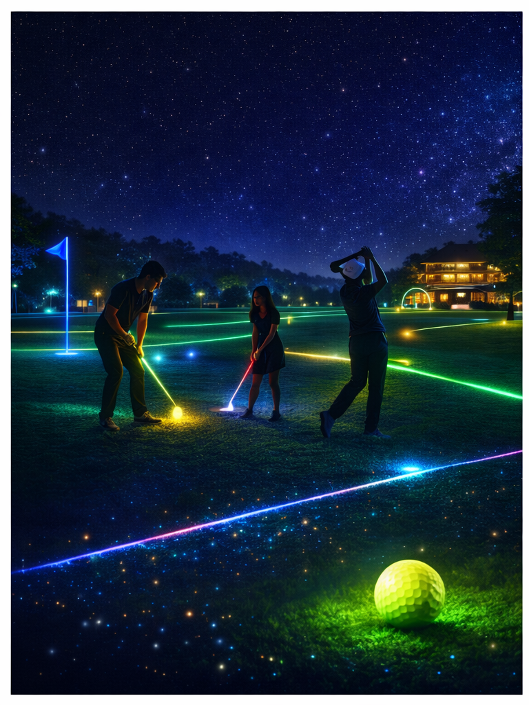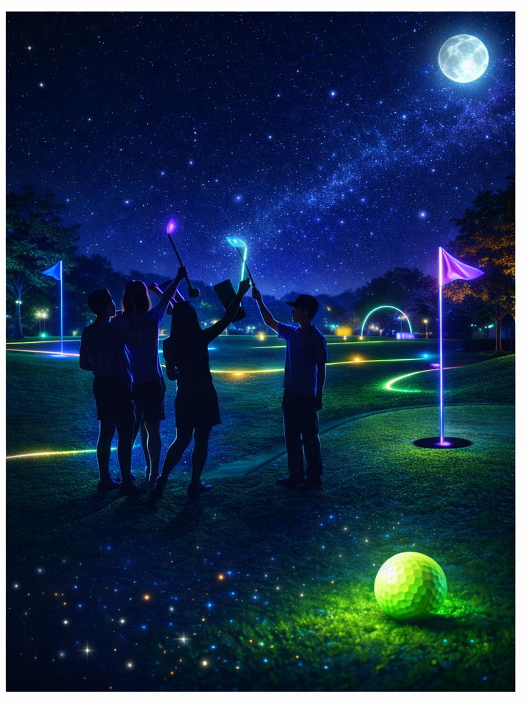 Glow-in-the-dark golf under the stars Visually stunning, fun, and social An experience people won’t forget
